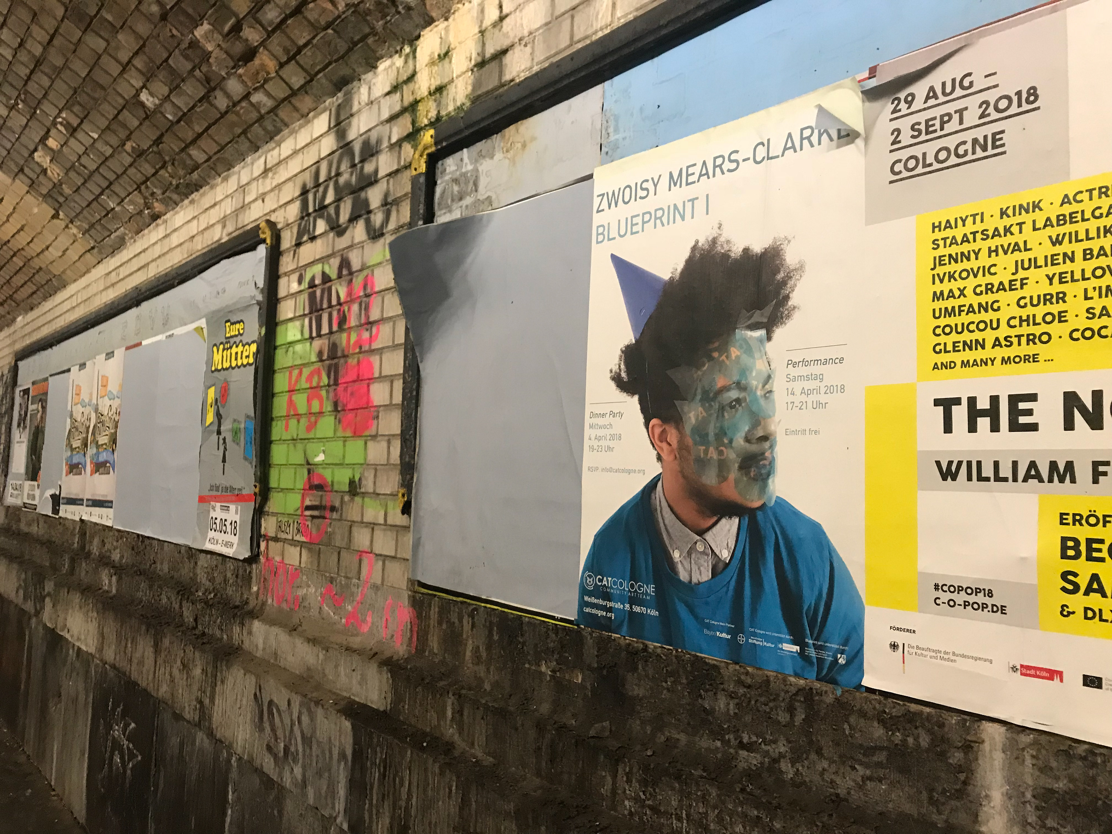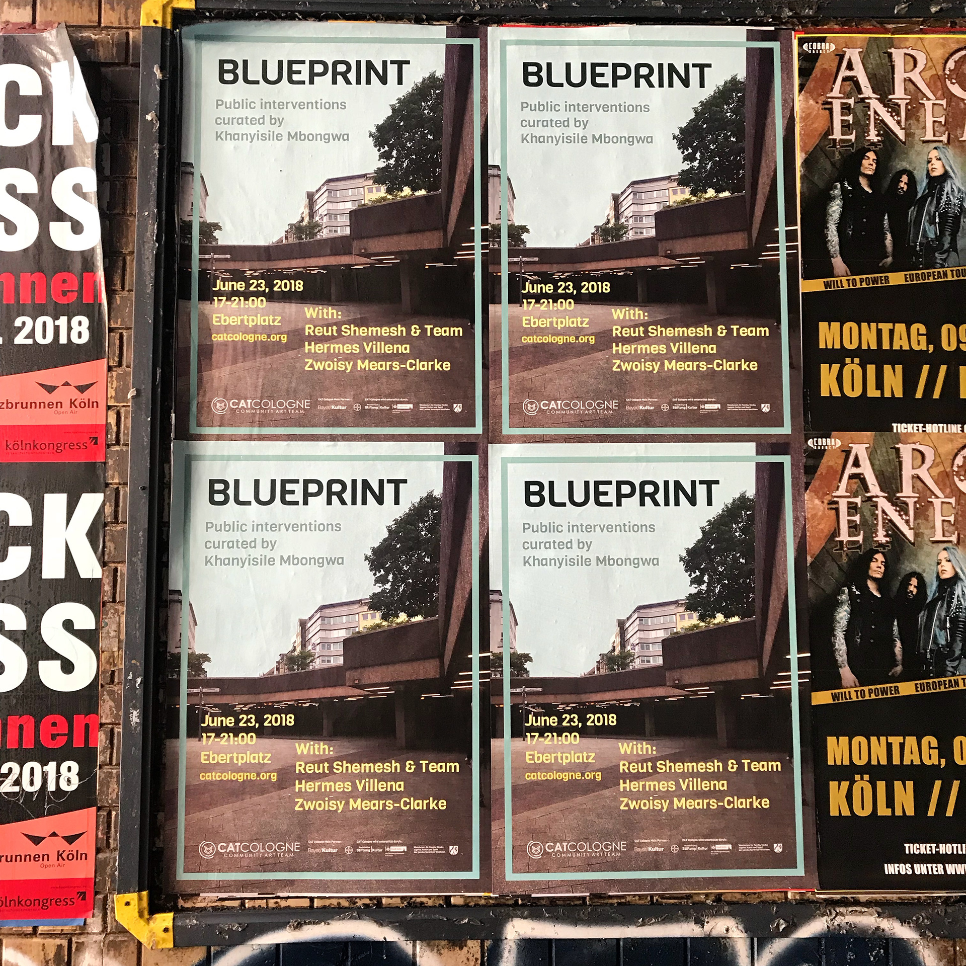 Various art event and exhibition posters displayed in Cologne, Germany to audiences of thousands.